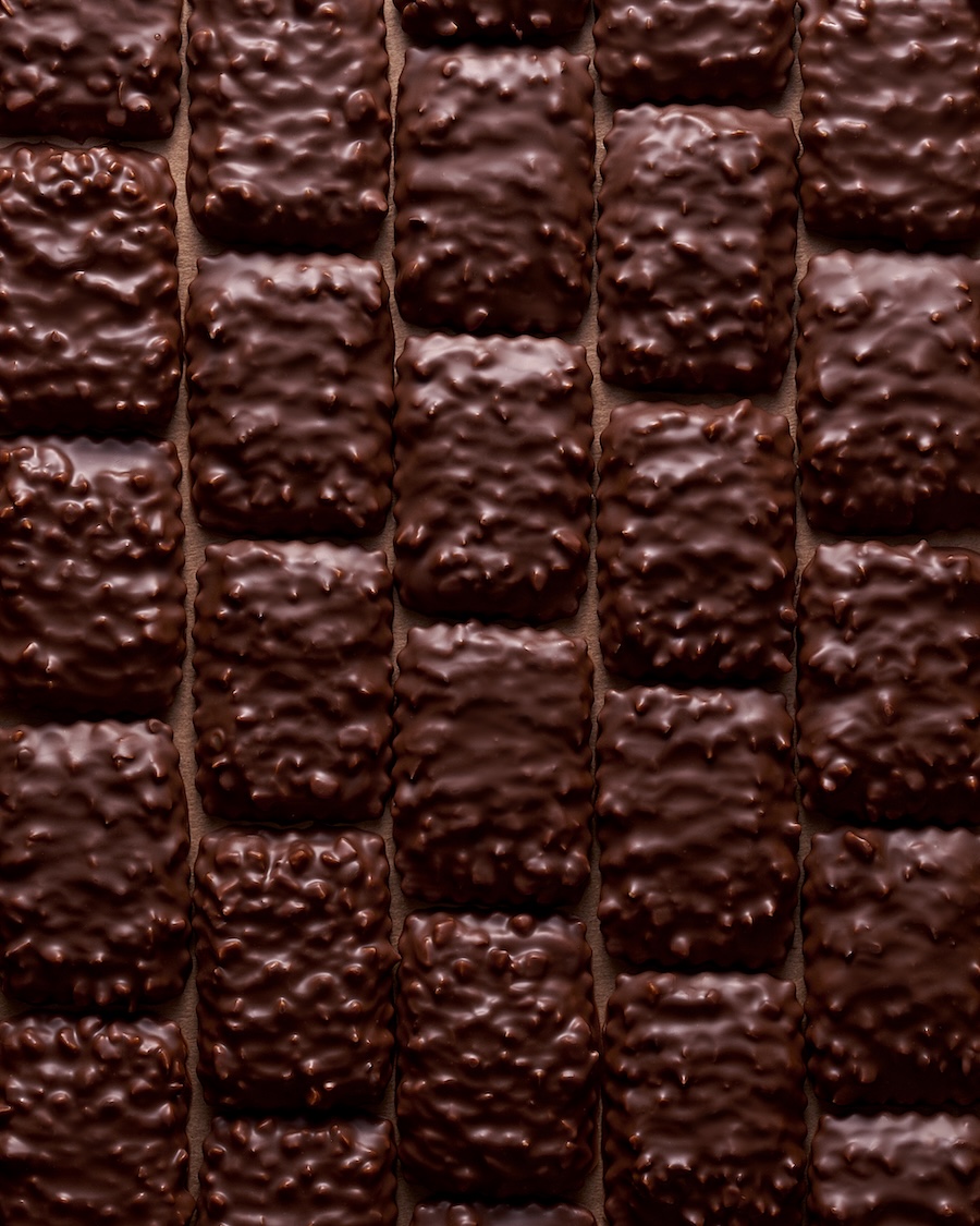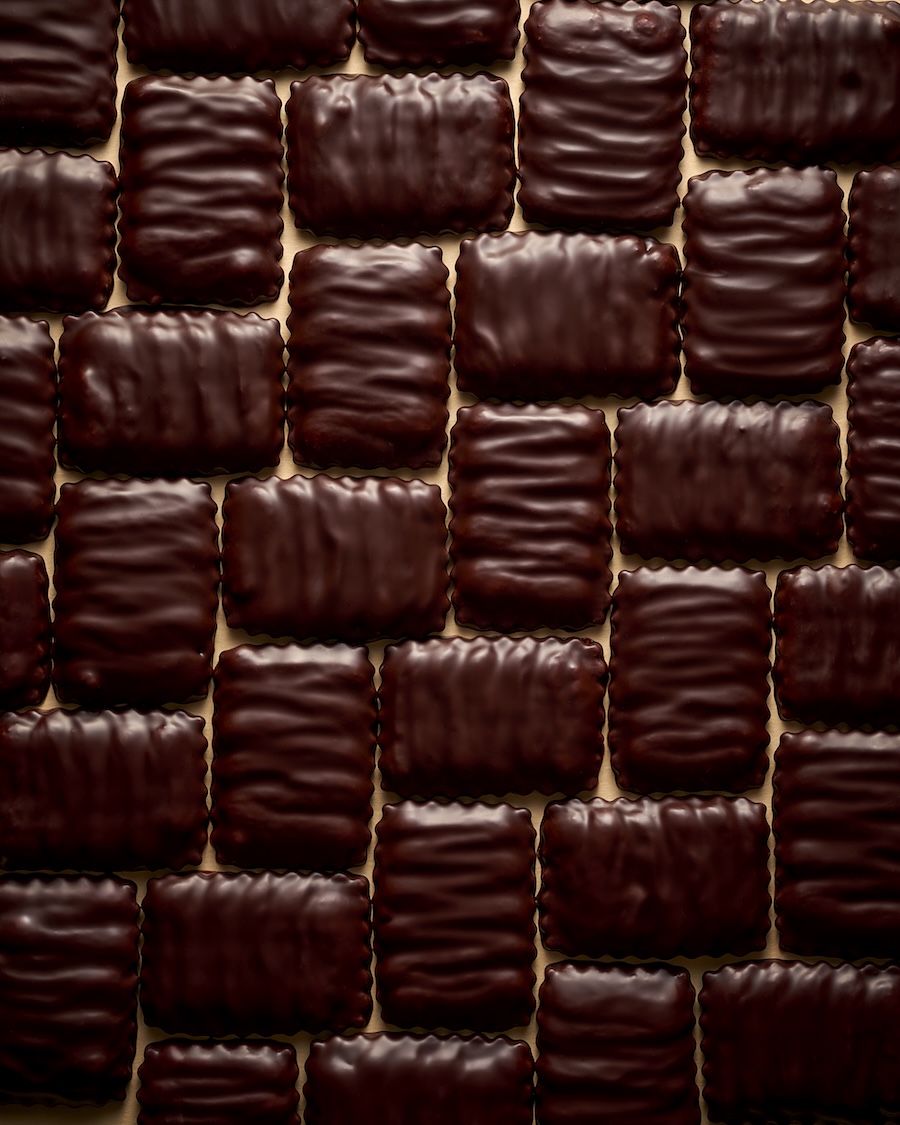 Éclairs contain French pastry with the Pastritect's modern approach. A crispy pâte à choux, filled with chocolate pastry cream creates an irresistible combination of texture and flavour. Thin chocolate leaves complete the experience, lending a exquisite aspect to each bite.